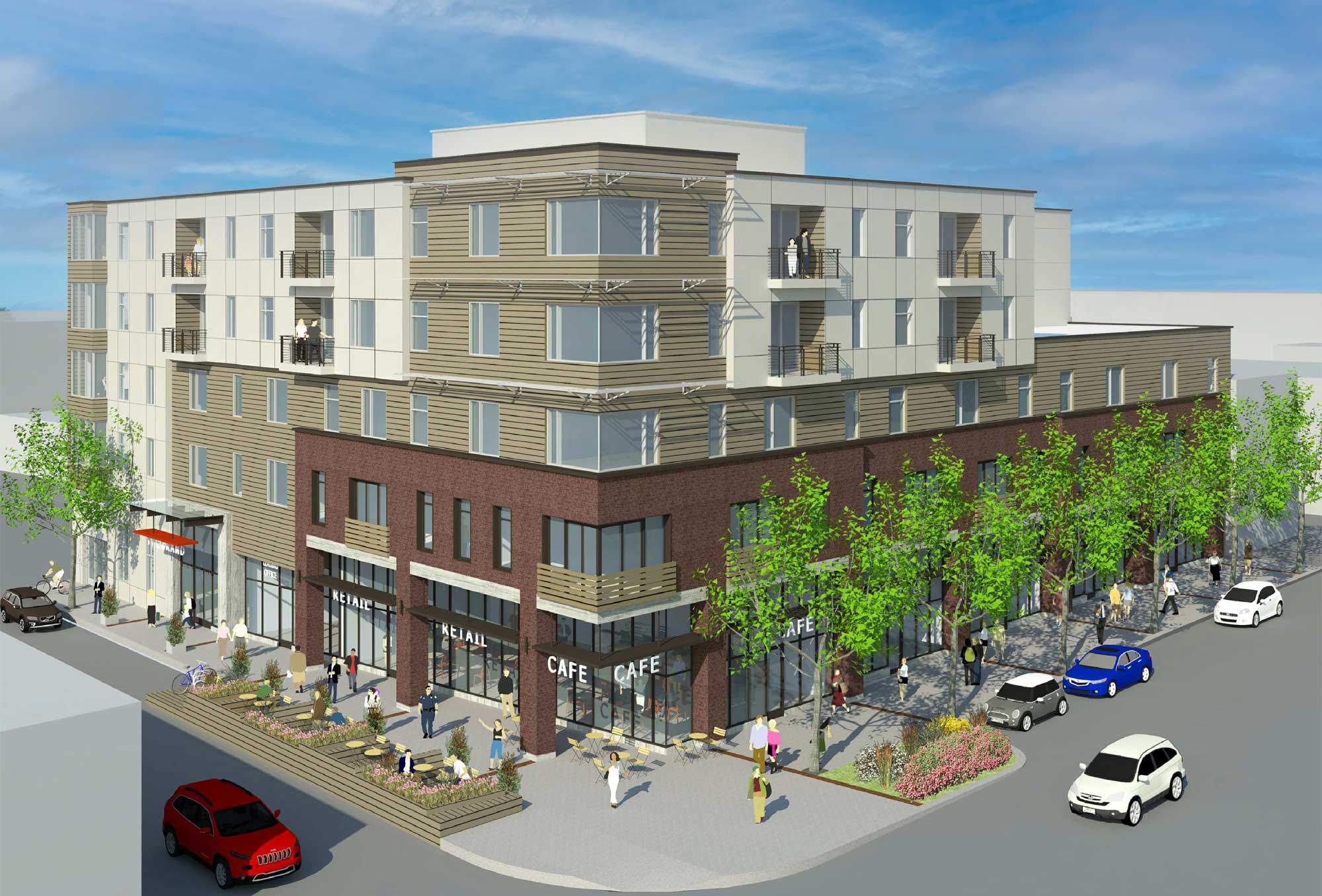 The project includes 46 residential units and 6,000 square feet of retail space in the newly up-zoned district of South San Francisco, within a short walking distance of the new commuter rail station and the region’s biotechnology hub.