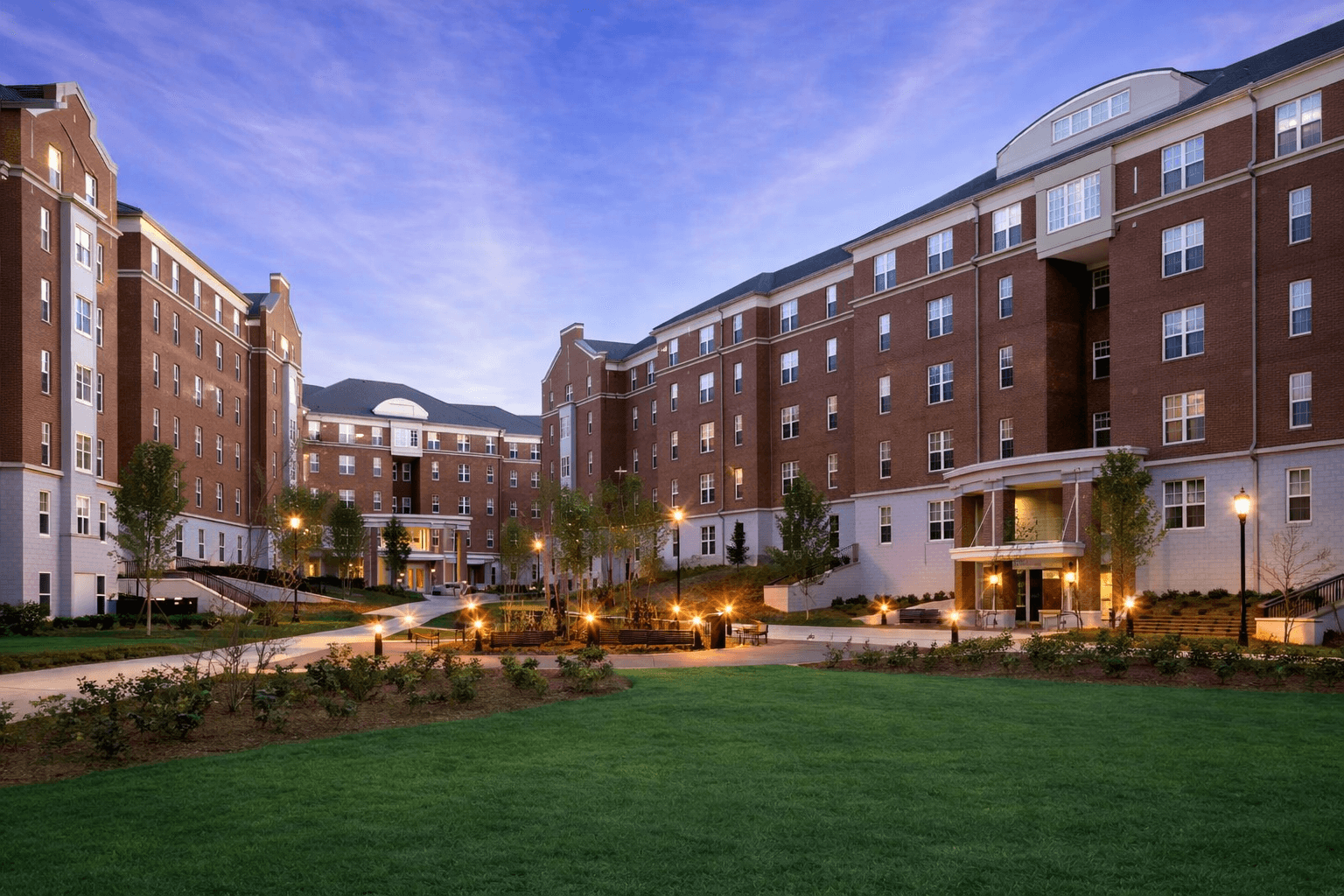 The project consisted of approximately 1,200 new beds of housing to be built on East Campus in the vicinity of the Ramsey Recreation Center. The project included a dining hall, approximately seven buildings each having four stories arranged in a quadrangle formation, a student amenities building (retail, branch post office, coin laundromat), parking garage and infrastructure.